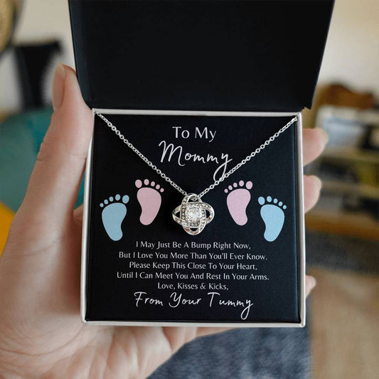 Mommy to Be | Baby Feet | Love Knot Necklace | Mother's Day Gift | Baby Shower Gift | Black Background