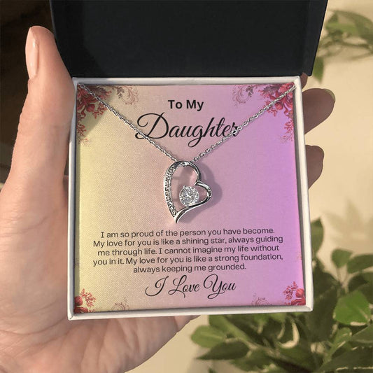 To My Daughter | Forever Love Necklace | Birthday Gift | Mother's Day Gift | Christmas Gift | Valentine's Day Gift | Graduation Gift | Pink Background